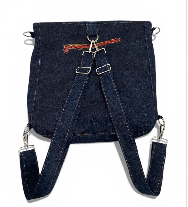 Hemos querido realizar un bolso que se pueda convertir en mochila , solo con cambiar el posicionamiento de sus asas , esto nos ayuda cuidar a nuestra espalda dependiendo lo pesado que lleves el bolso.
