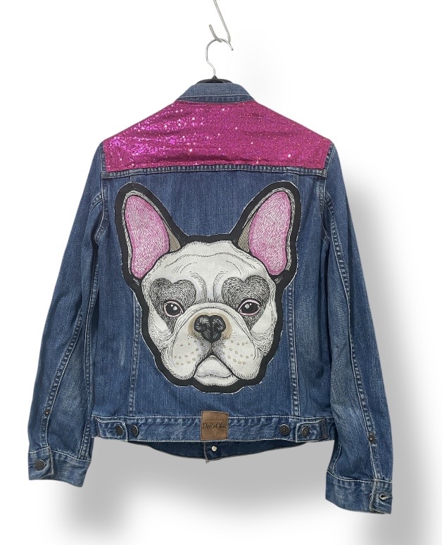En la espalda hemos bordado una ilustración de este bull dog para darle mayor personalidad , es perfecta para los que somos amantes de los animales.