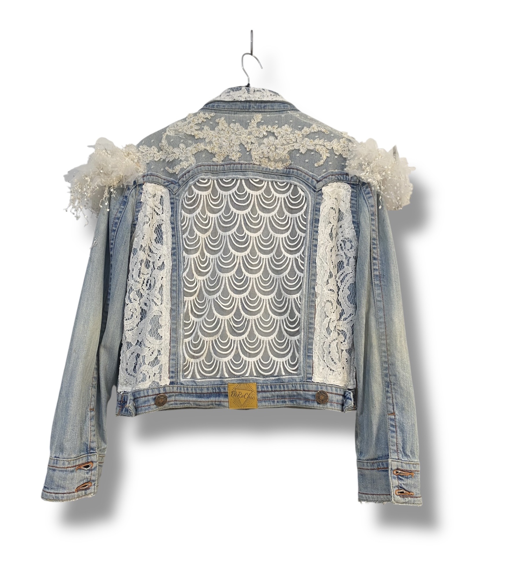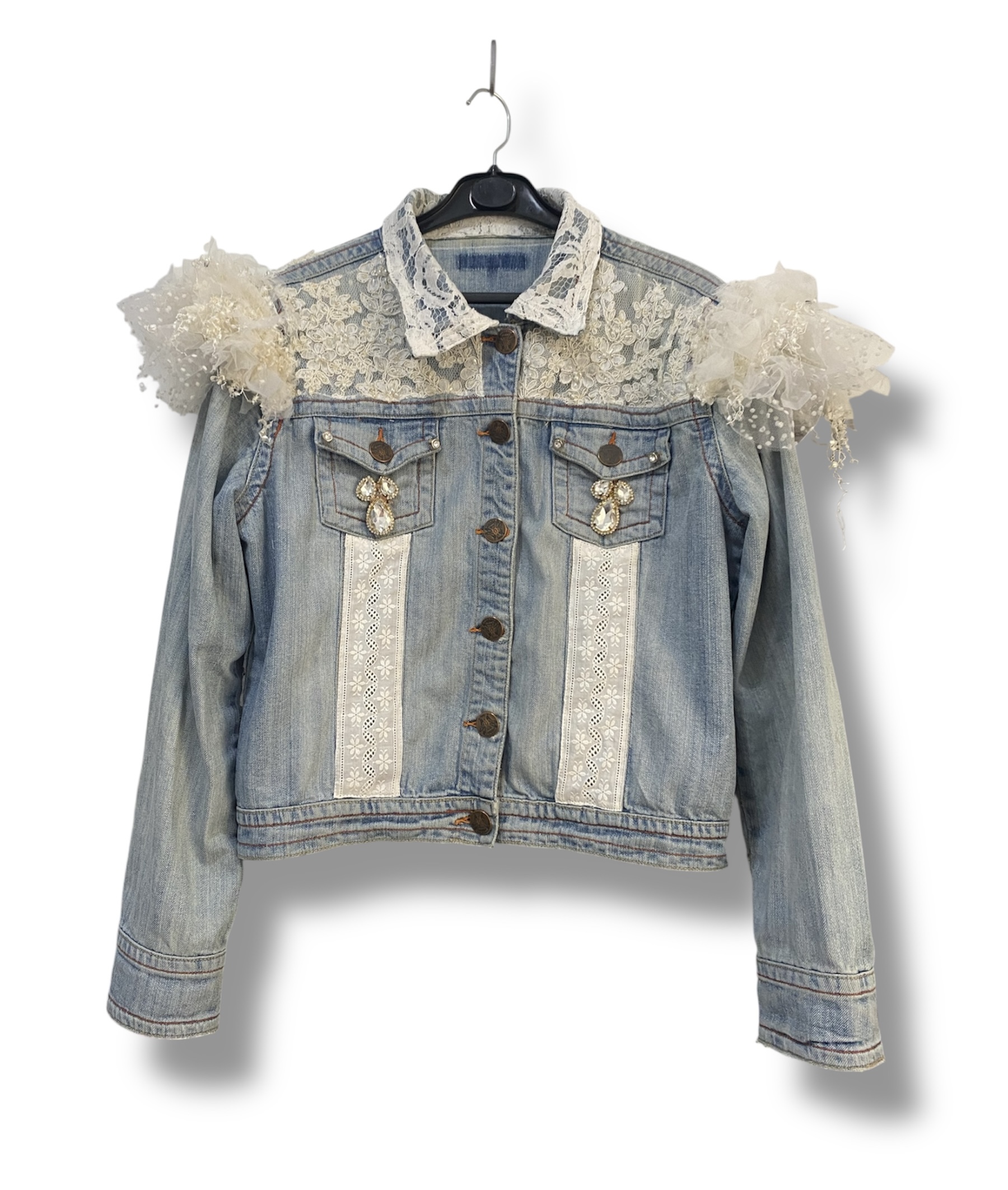 Esta joya mezcla el espíritu libre del denim con encajes, tul y flores que parecen robadas de un vestido de gala.