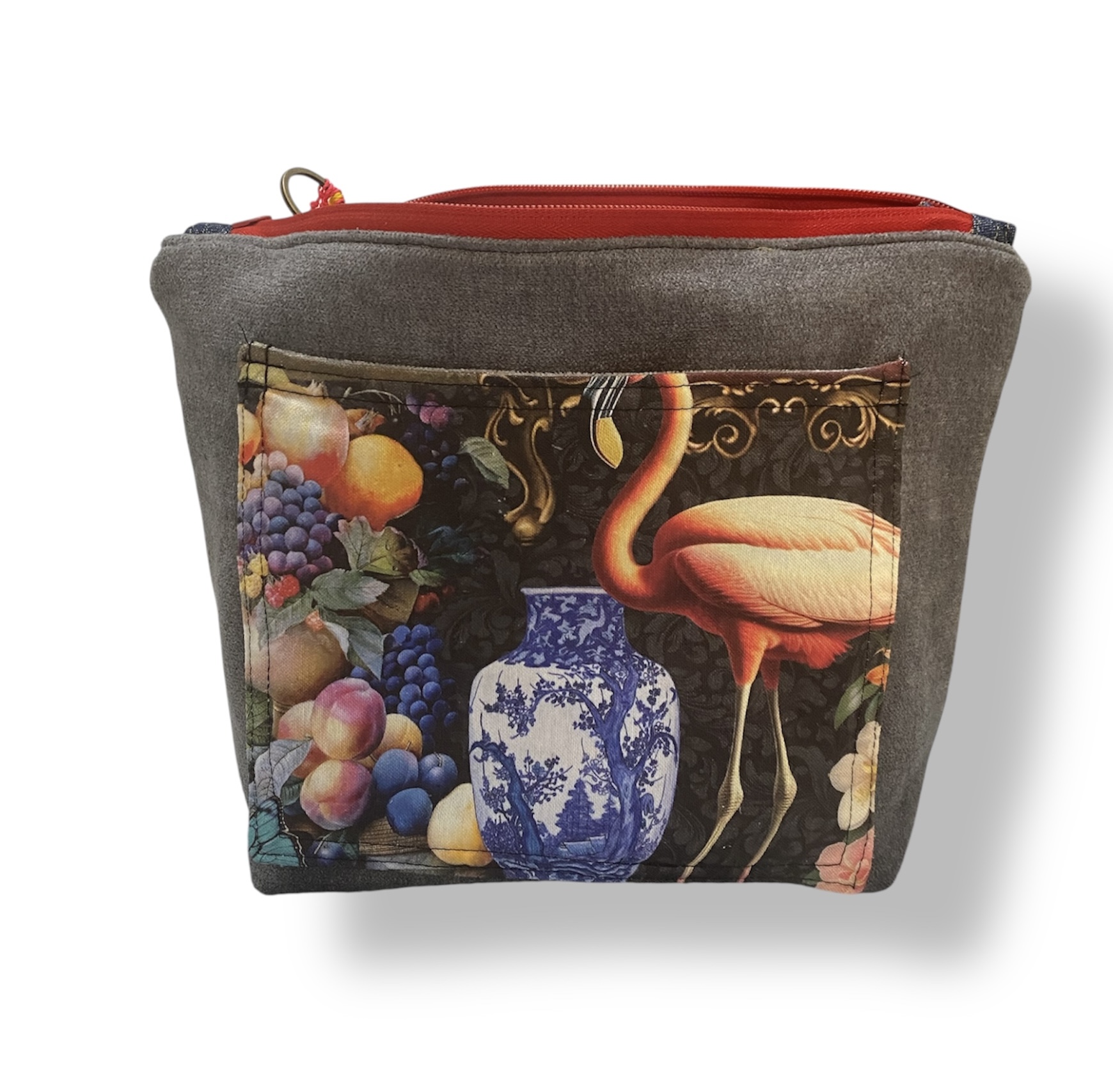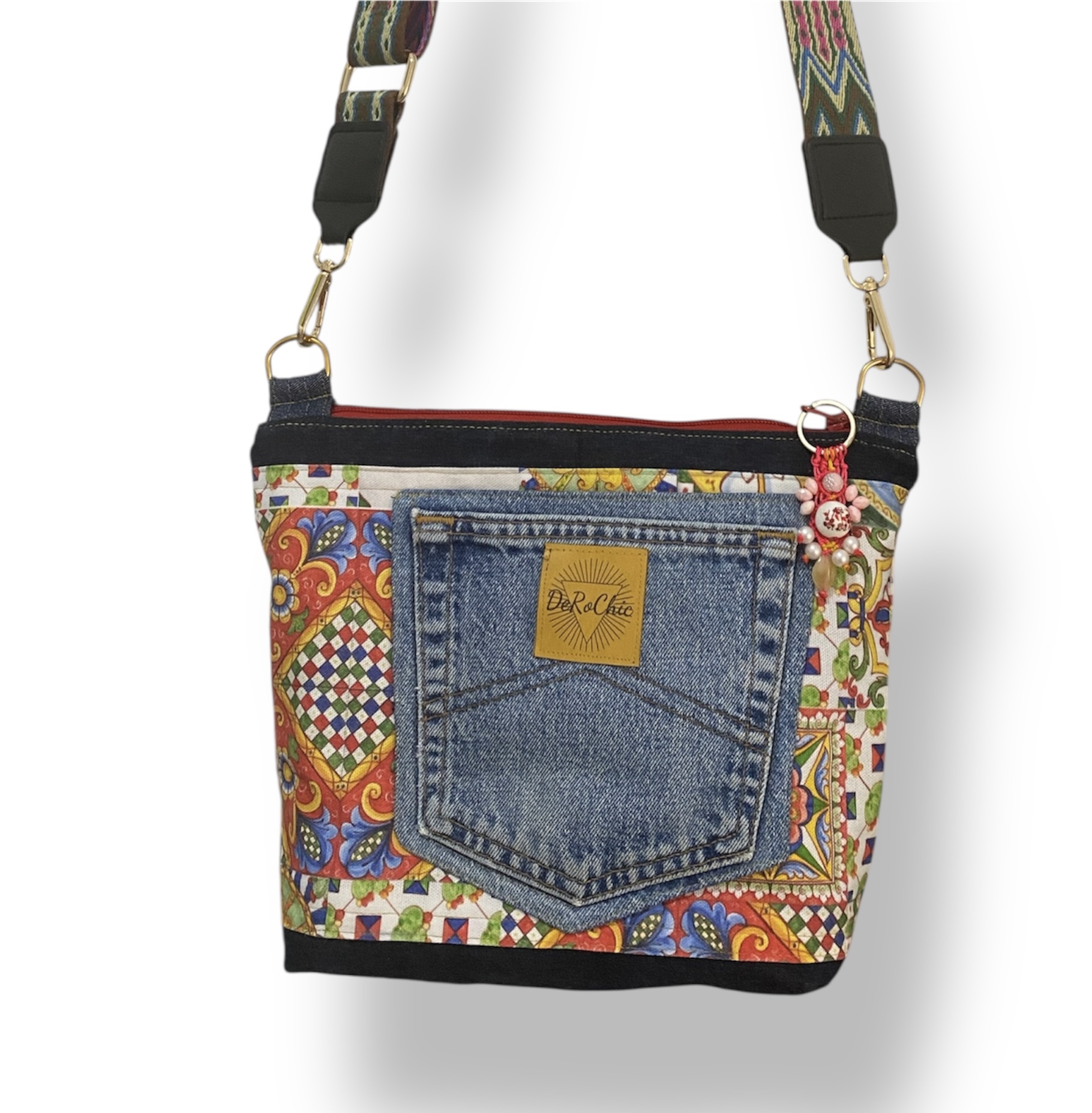 - Realizado con vaquero y retal de algodón ,bolsillo de un pantalón vaquero reciclado.