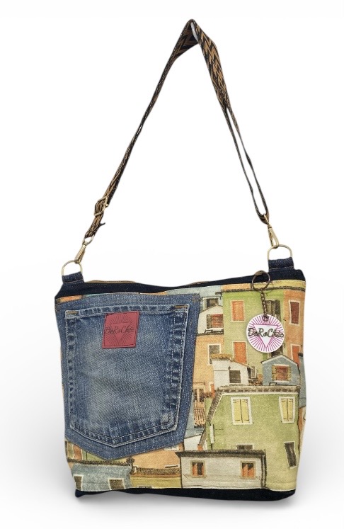 - Realizado con tejido vaquero y algodón , lleva un bolsillo de pantalón vaquero reciclado.