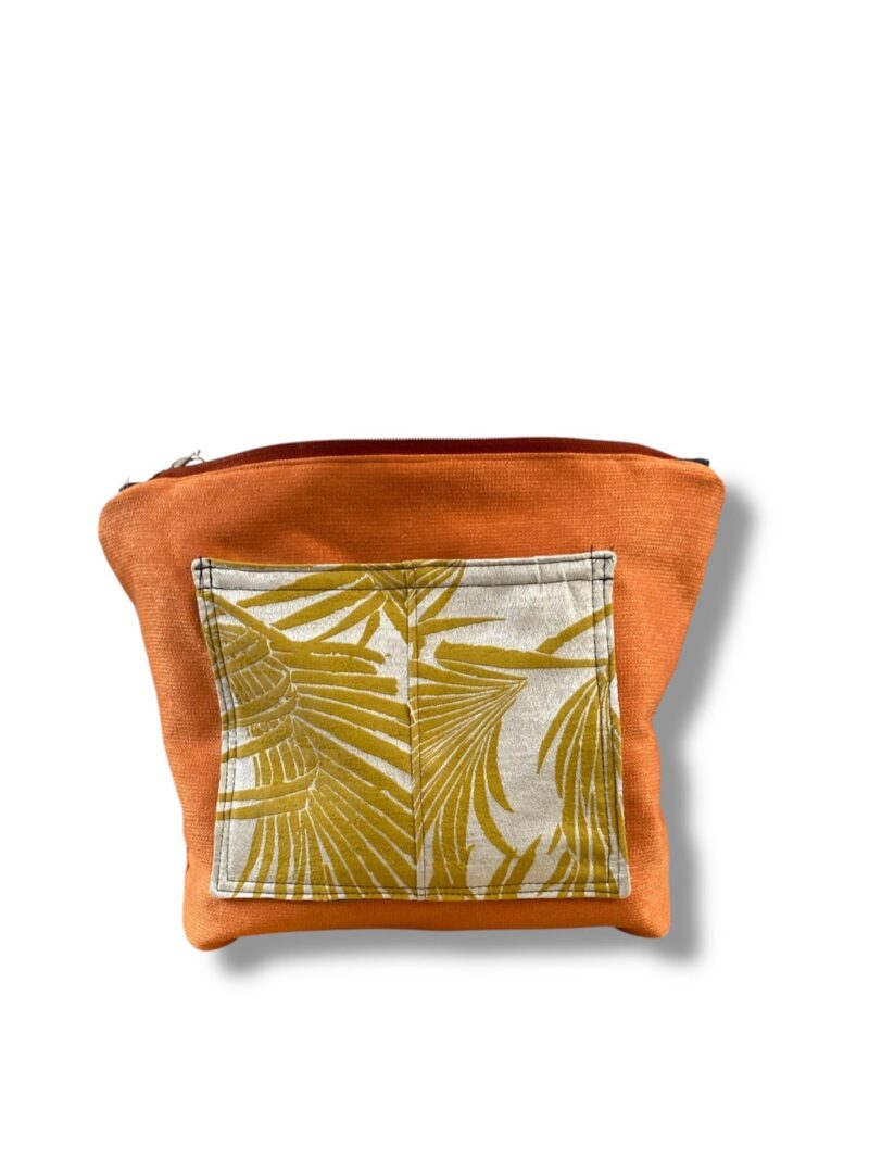 - Forro de terciopelo de tapicería naranja y bolsillo de seda .
