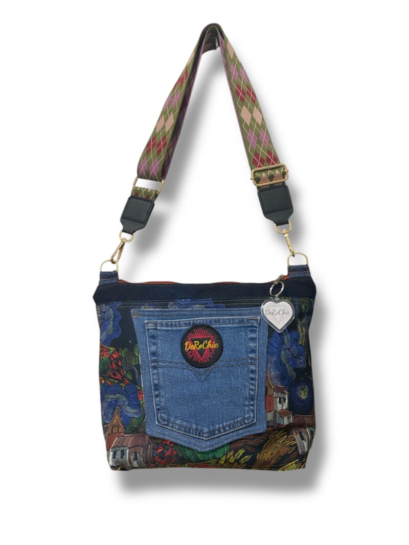 Una pieza única que fusiona arte y moda de una manera elegante y sostenible. Su diseño no solo evoca la serenidad y la belleza de las pinturas post impresionistas del famoso artista, sino que también incorpora materiales reciclados, promoviendo la sostenibilidad en la moda. El uso de tela vaquera reciclada junto con el toque de algodón, crea una fusión perfecta entre lo moderno y lo artístico, ofreciendo no solo estilo, sino también un mensaje de concienciación ambiental. Este bolso es la representación de cómo la moda puede abrazar el arte, sin perder su funcionalidad y compromiso con el medio ambiente |