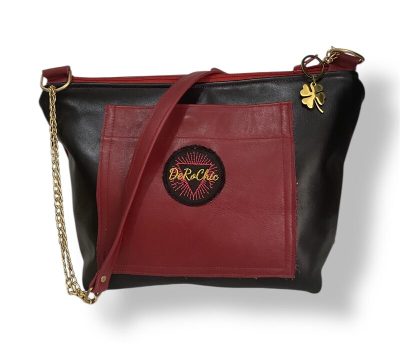 En DeRoChic nos gusta jugar con las combinaciones , que vosotras tengáis dos bolsos en uno , dependiendo de tu outfit podrás elegir el bolso negro o el bolso granate es muy fácil de combinación y sobre todo no tendrás que sacar las cosas de tu bolso , este te va con todo.