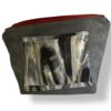 - Forro:realizado con terciopelo gris de tapicería con un bolsillo degradado en gris .