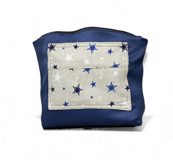 - Forro:realizado con tejido acolchado azul con un bolsillo de algodón de estrellas .